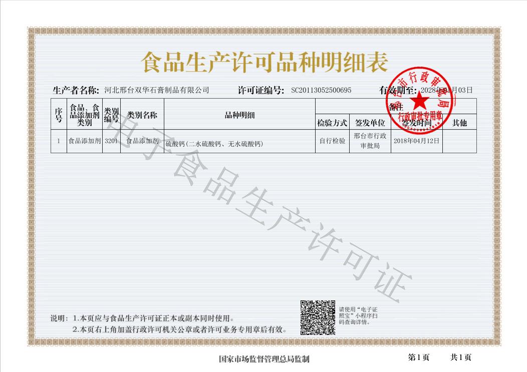 食品添加劑生產(chǎn)許可證-明細(xì)
